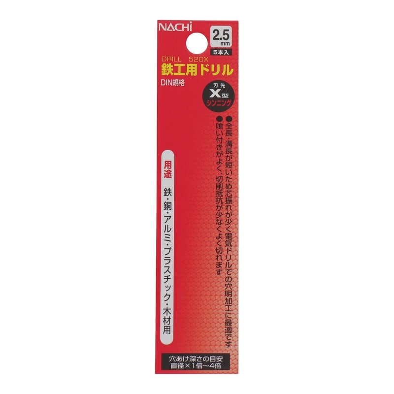 不二越 502290 鉄工用ドリル 2.5mm 5本入 #453225 1個(ご注文単位1個)【直送品】