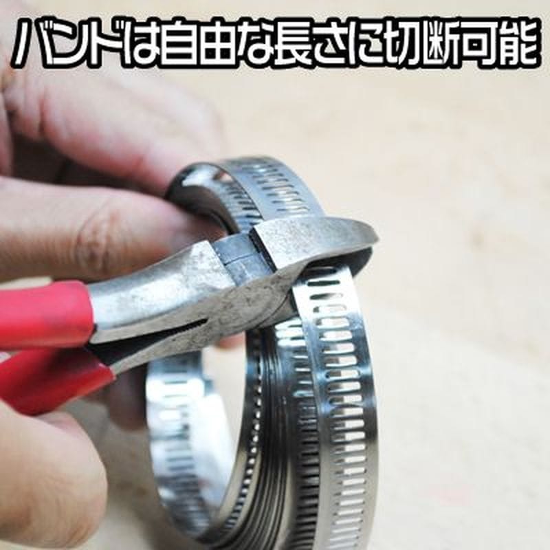 必要な長さにカットし、様々なサイズのホースクランプを作成できるセットです。バンド部は丈夫なステンレス製です。セット内容:バンド、クランプ×8、共通仕様、バンド全長:3m、バンド幅:12.7mm、クランプナット二面幅:8mm、推奨ドライバーサイズ:SL8対応ホース外径:φ30mm以上