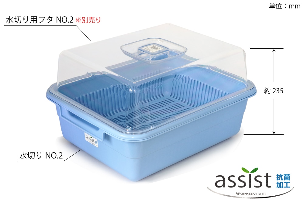 新輝合成 水切りカゴ No.2 420×330×140Hmm ブルー 1個 (ご注文単位1個)【直送品】