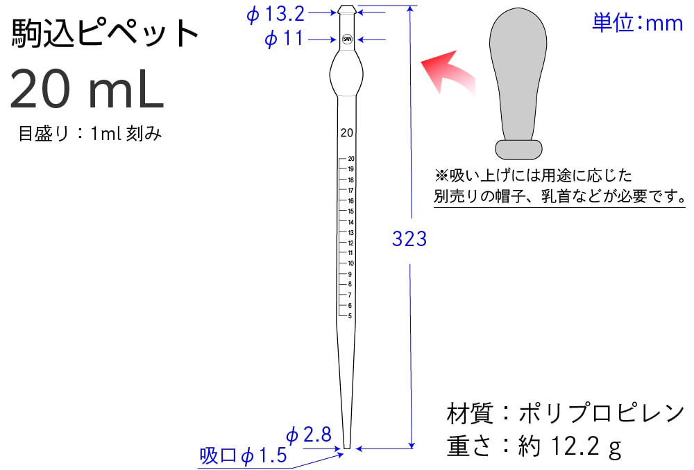 神田ゴム化学 駒込ピペット 20mL (10本入) 1個 (ご注文単位1個)【直送品】