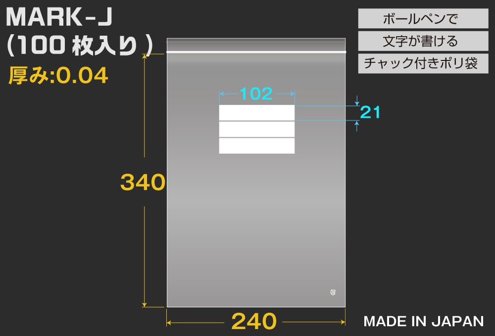 ユニパックマーク(透明) J 340×240mm 0.04mm厚 (100枚入) 1個 (ご注文単位1個)【直送品】
