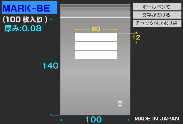 ユニパックマーク(透明) 8E 140×100mm×0.08mm厚 (100枚入) 1個 (ご注文単位1個)【直送品】