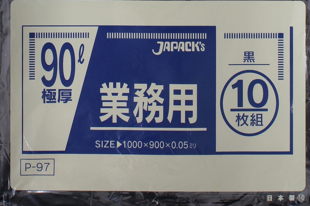 ジャパックス ゴミ袋90L 黒 900×1000mm (10枚入) 1個 (ご注文単位1個)【直送品】