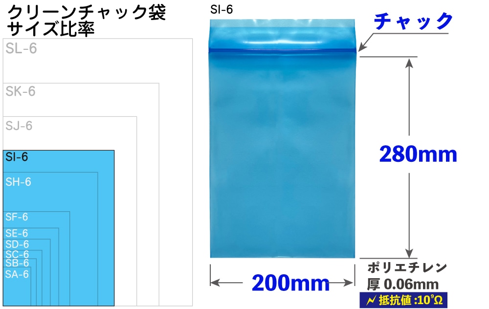クリーンチャック袋 SI- 6 0.06×200×280mm (100枚入) 1個 (ご注文単位1個)【直送品】