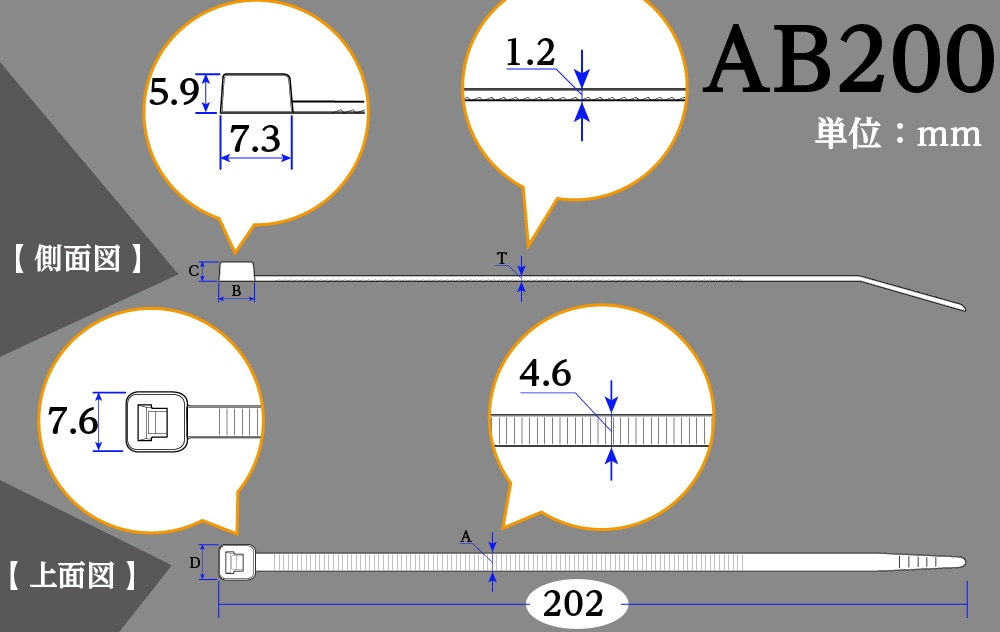 ヘラマンタイトン インシュロックタイ 標準グレード AB200 (100本入) 1包 (ご注文単位1包)【直送品】