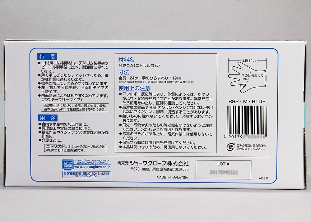 ショーワグローブ ニトリスト・タッチ手袋 No882 Mサイズ (100枚入) 1箱 (ご注文単位1箱)【直送品】