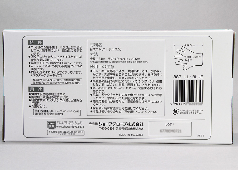 ショーワグローブ ニトリスト・タッチ手袋 No882 LLサイズ (100枚入) 1箱 (ご注文単位1箱)【直送品】