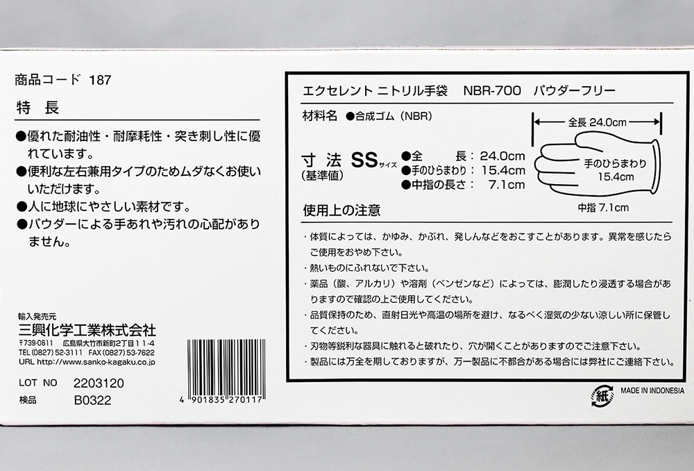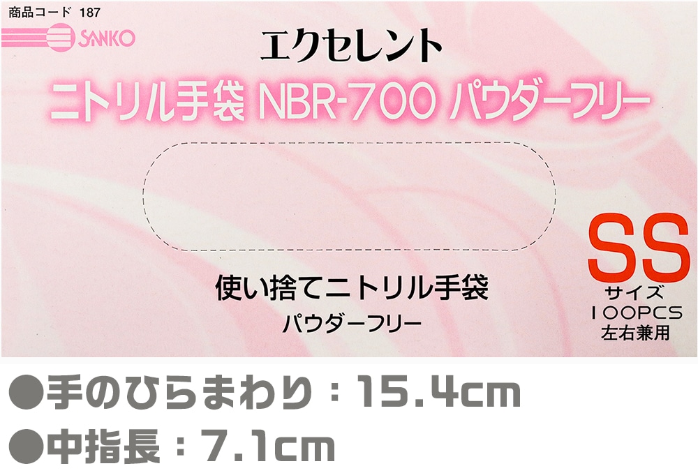 使い捨て手袋 エクセレントニトリル手袋 NBR-700 SSサイズ 100枚入 ライトパープル PF 1箱 (ご注文単位1箱)【直送品】