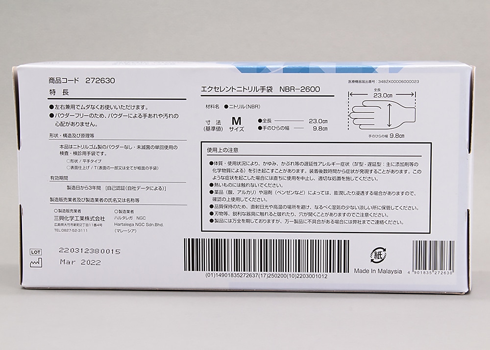 使い捨て手袋 エクセレントニトリル手袋 NBR-2600 (M) 200枚 1箱 (ご注文単位1箱)【直送品】