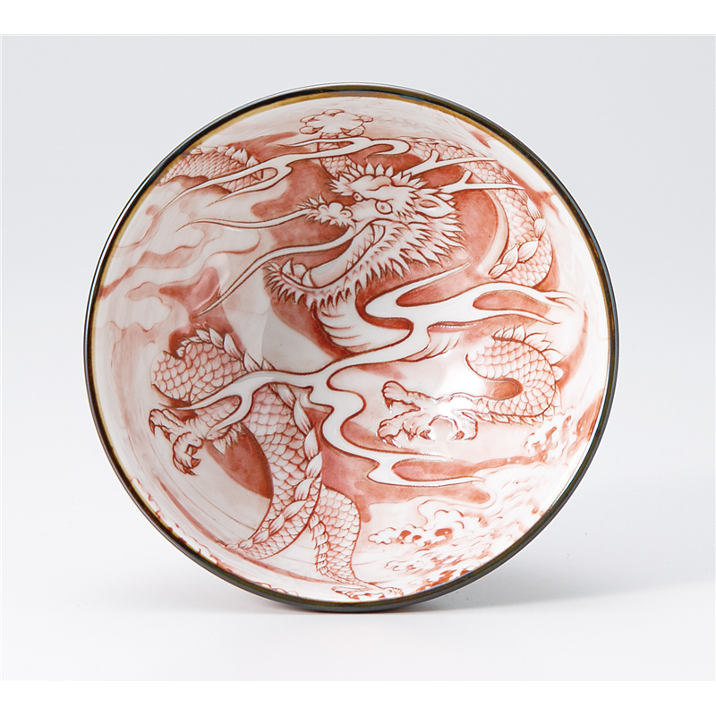 古林陶器 飯椀 ドラゴン 大平 赤 1332940401 1個(ご注文単位1個)【直送品】