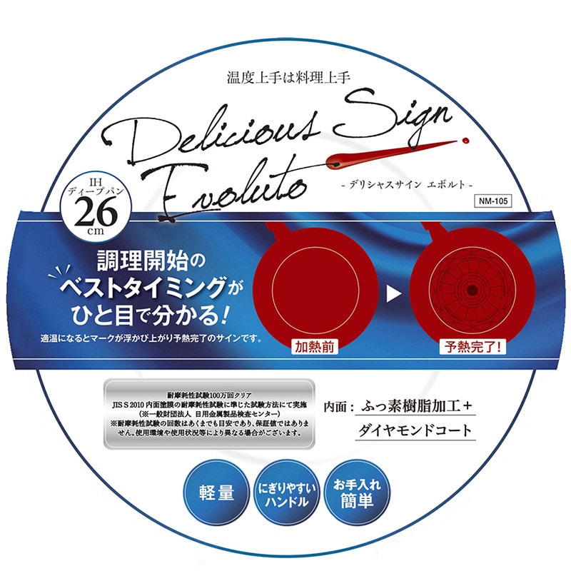 中山福 ディープパン デリシャスサインエボルト IH 26cm レッド NM-105 1個(ご注文単位1個)【直送品】