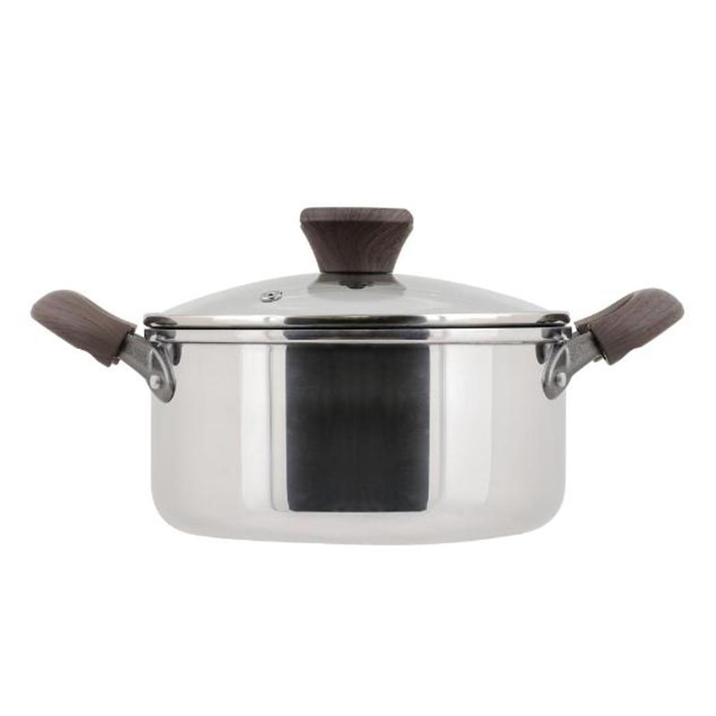 中山福 両手鍋 ミロワール ガラス蓋付 IH対応 20cm ミラー仕上げ ND-323 1個(ご注文単位1個)【直送品】