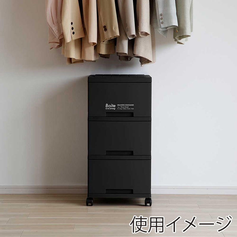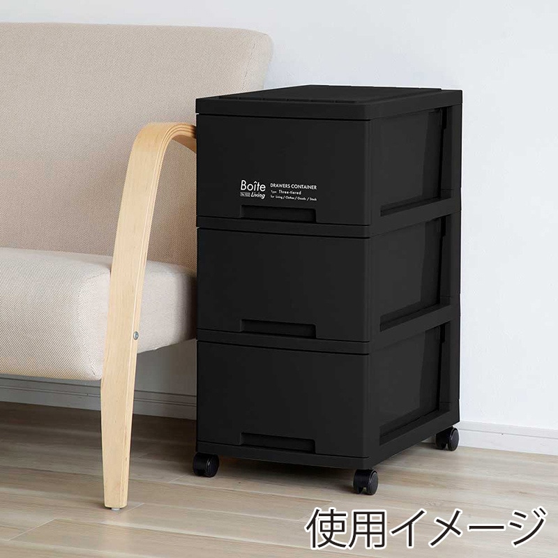 中山福 収納ケース 引き出し 3段 スリム ブラック MA-4038 1個(ご注文単位1個)【直送品】