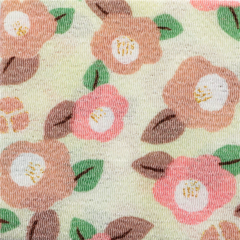日本紐釦貿易 ちりめん 金彩 モダン椿 生成 巾約70cm×8m切売カット GH52-03-8M 1枚(ご注文単位1枚)【直送品】