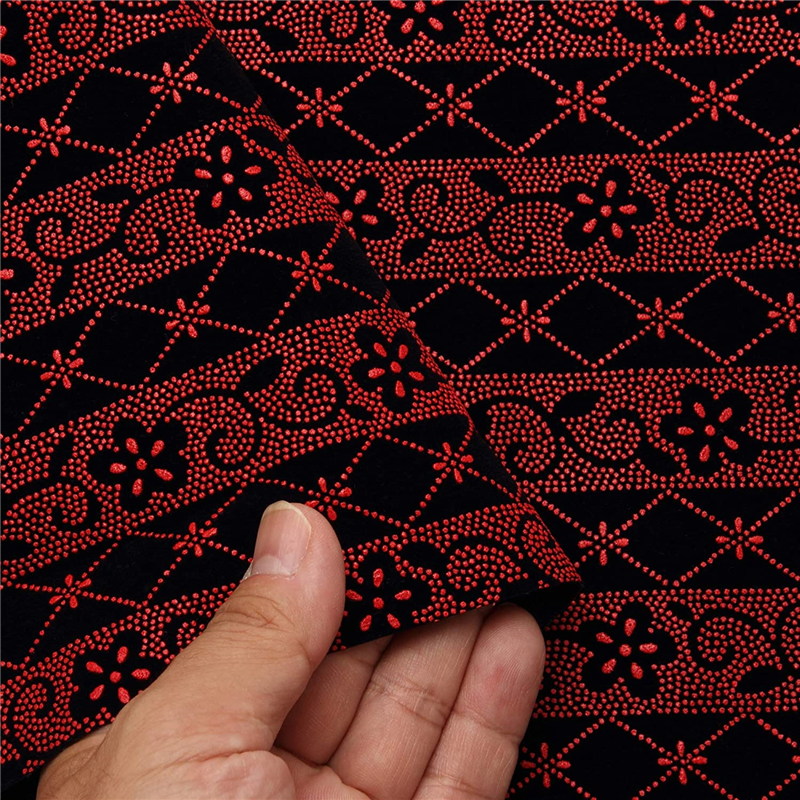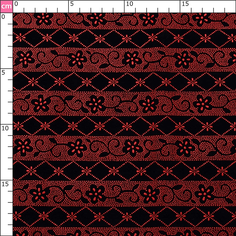 日本紐釦貿易 印伝調合皮スエードレザー生地 巾92cm×3m切売カット ボーダー柄 赤 KP4080-11D-3M 1枚(ご注文単位1枚)【直送品】