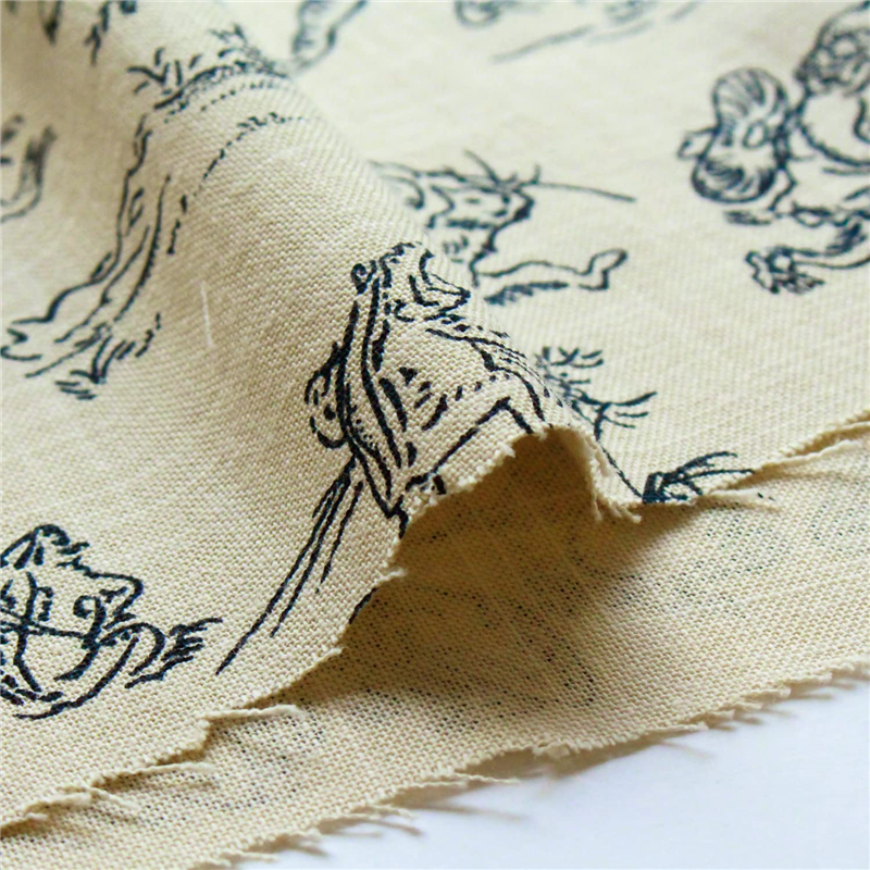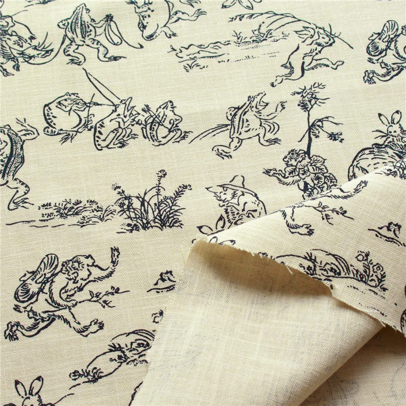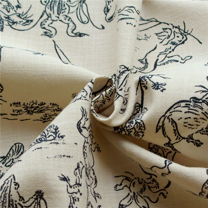 日本紐釦貿易 鳥獣戯画 むら糸藍染調 プリント生地 ベージュ×ネイビー線 巾約110cm 5mカット KW7070-7C-5M 1枚(ご注文単位1枚)【直送品】