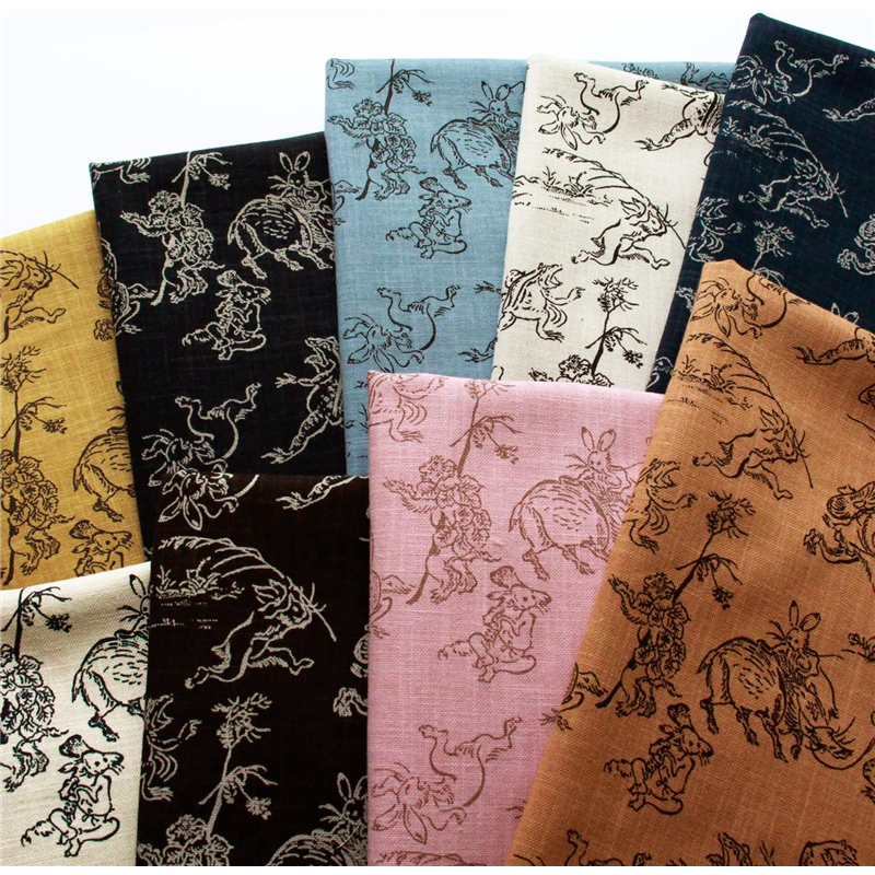 日本紐釦貿易 鳥獣戯画 むら糸藍染調 プリント生地 カラシ×黒線 巾約110cm 4mカット KW7070-7J-4M 1枚(ご注文単位1枚)【直送品】