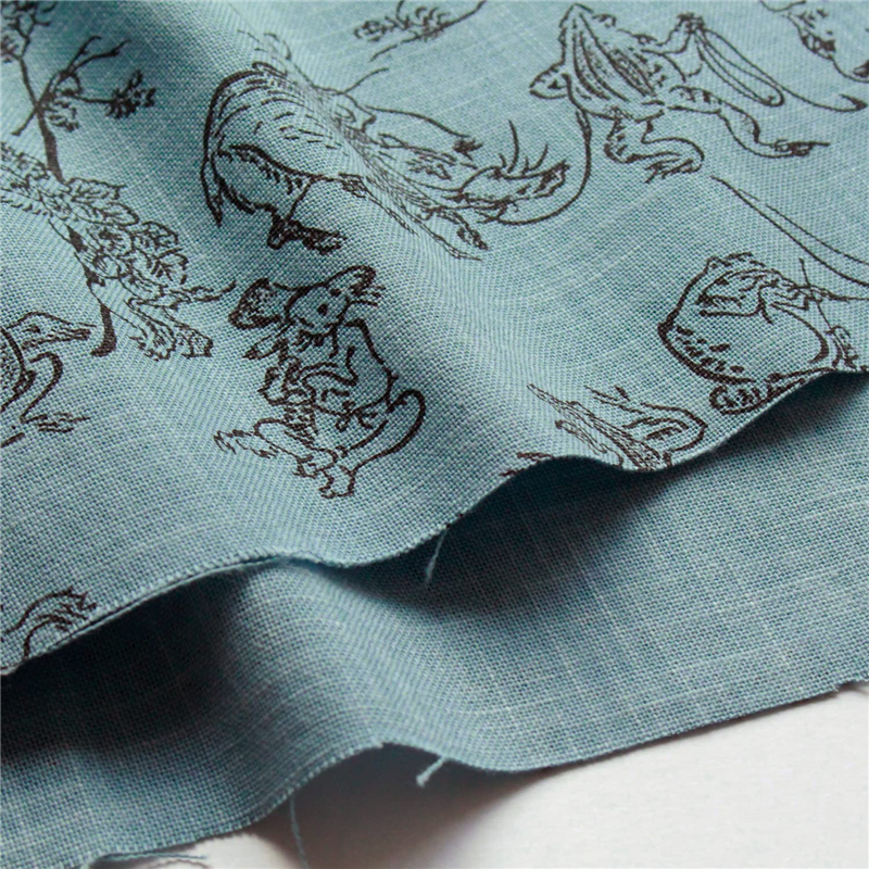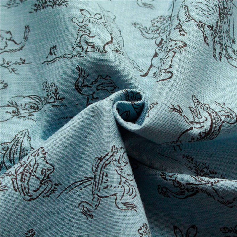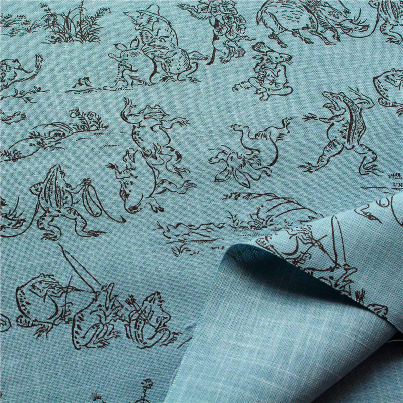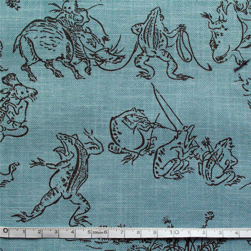 日本紐釦貿易 鳥獣戯画 むら糸藍染調 プリント生地 水色×黒線 巾約110cm 4mカット KW7070-7K-4M 1枚(ご注文単位1枚)【直送品】