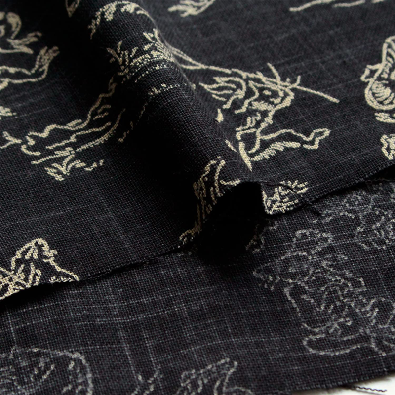 日本紐釦貿易 鳥獣戯画 むら糸藍染調 プリント生地 黒×ベージュ線 巾約110cm 2mカット KW7070-7L-2M 1枚(ご注文単位1枚)【直送品】
