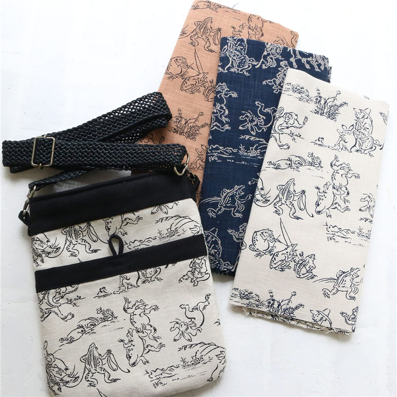 日本紐釦貿易 鳥獣戯画 むら糸藍染調 プリント生地 黒×ベージュ線 巾約110cm 3mカット KW7070-7L-3M 1枚(ご注文単位1枚)【直送品】