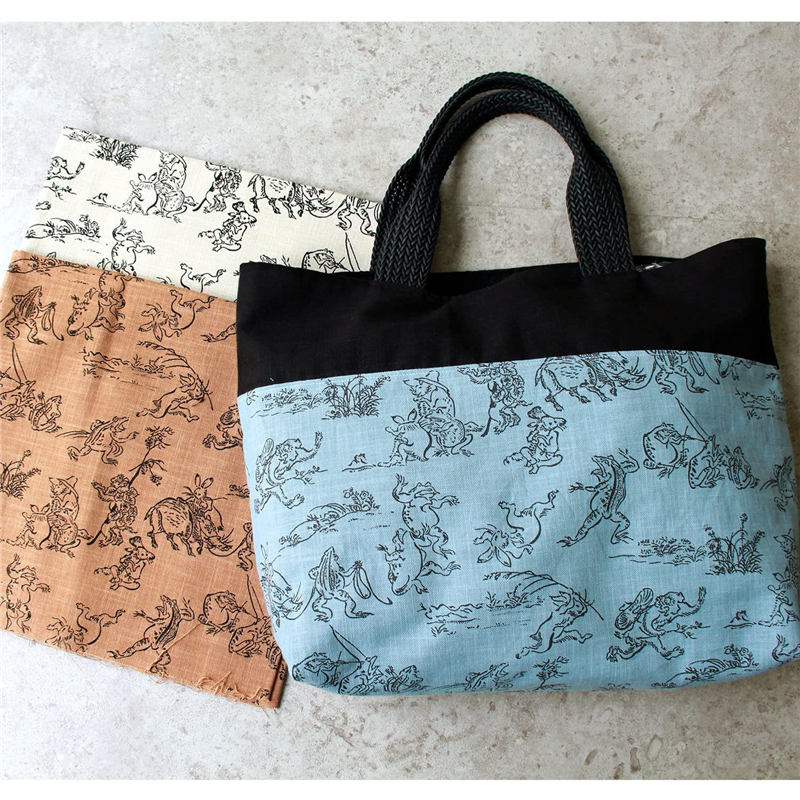 日本紐釦貿易 鳥獣戯画 むら糸藍染調 プリント生地 ピンク×ブラウン線 巾約110cm 1mカット KW7070-7M-1M 1枚(ご注文単位1枚)【直送品】