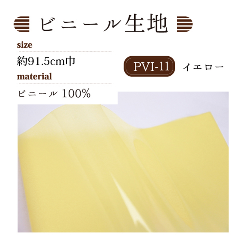 日本紐釦貿易 ビニール生地(厚み0.3mm) 巾91.5cm×3m切売カット イエロー PVI-11-3M 1枚(ご注文単位1枚)【直送品】