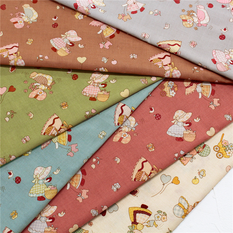 日本紐釦貿易 スーちゃんコレクション Sunbonnet Sue プリント生地 グリーン 巾約110cm×4mカット NCM22000-2D-4M 1枚(ご注文単位1枚)【直送品】