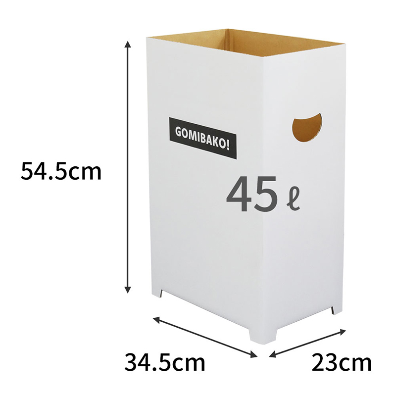 - 45リットルのゴミ袋に対応し、どこでも使えるシンプルなデザインです。組み立てが簡単で、使用後は資源ゴミとしてリサイクル可能。イベントや一時的な使用にもおすすめです。