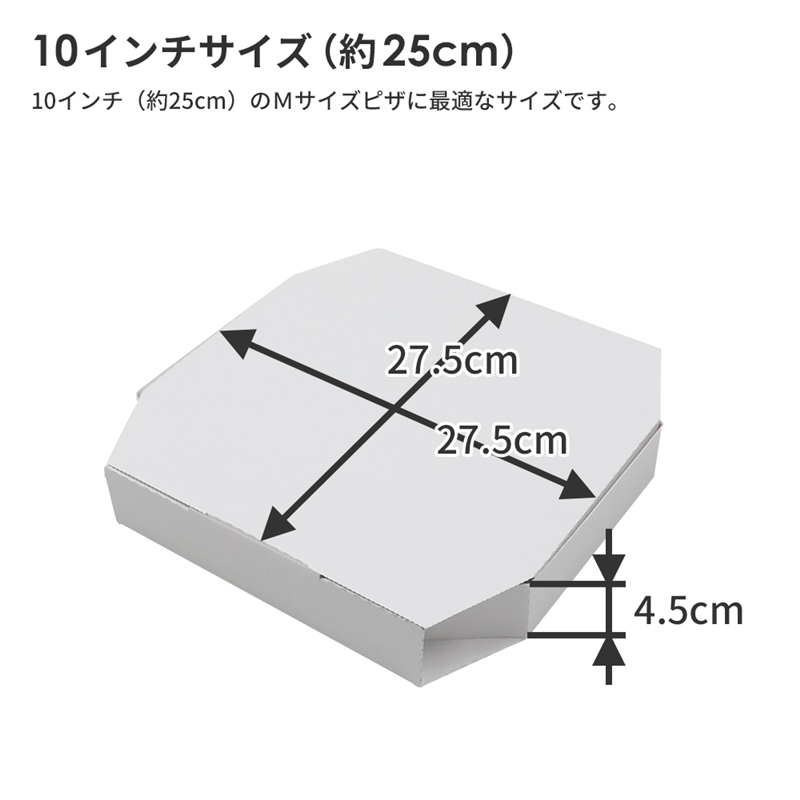 ピザ箱 10インチ用 Mサイズ 白 100枚入 275×275mm 1セット(ご注文単位1セット)【直送品】