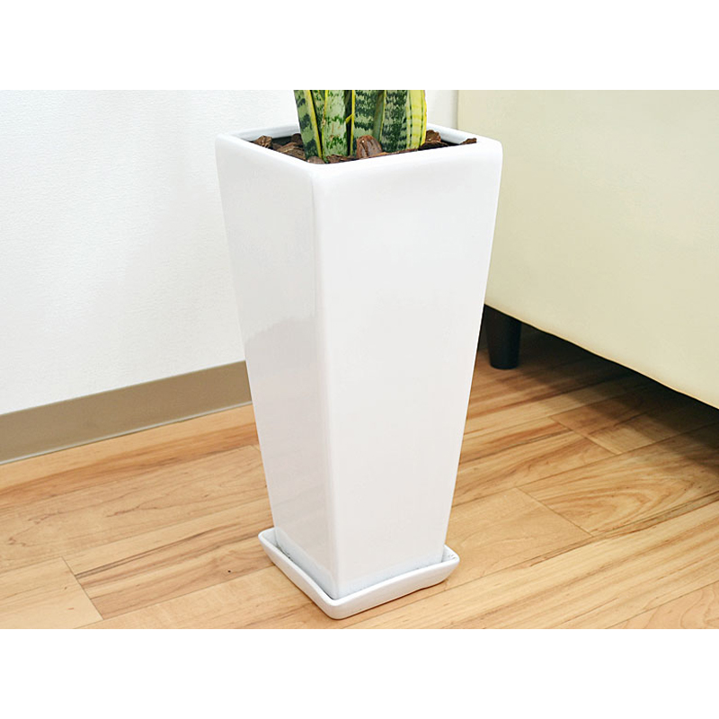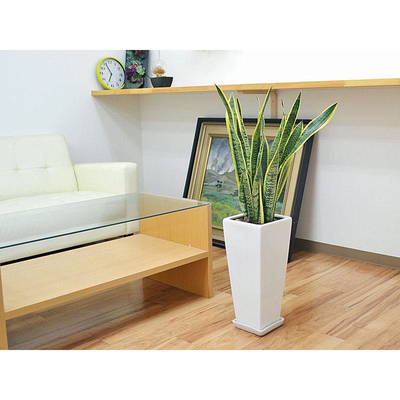 琴花園 観葉植物 サンスベリア ローレンティ 7号陶器鉢植え 75cm 白 1個(ご注文単位1個)【直送品】