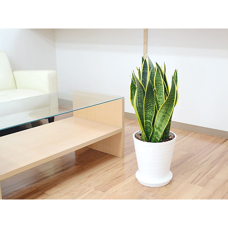 琴花園 観葉植物 サンスベリア サンセベリア ローレンティ 8号セラート鉢植え 白 1個(ご注文単位1個)【直送品】