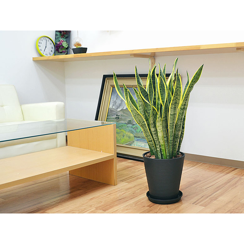 琴花園 観葉植物 サンスベリア サンセベリア ローレンティ 8号セラート鉢植え 黒 1個(ご注文単位1個)【直送品】