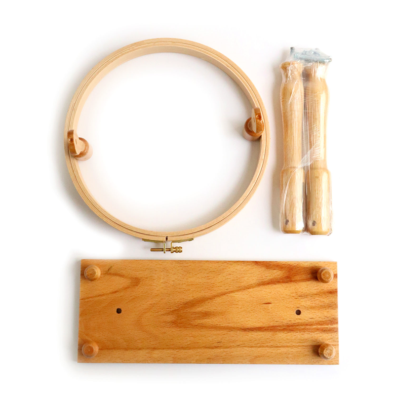 刺しゅう枠の外径22.5cm、内径20.5cm、台座の28cm×12.5cm