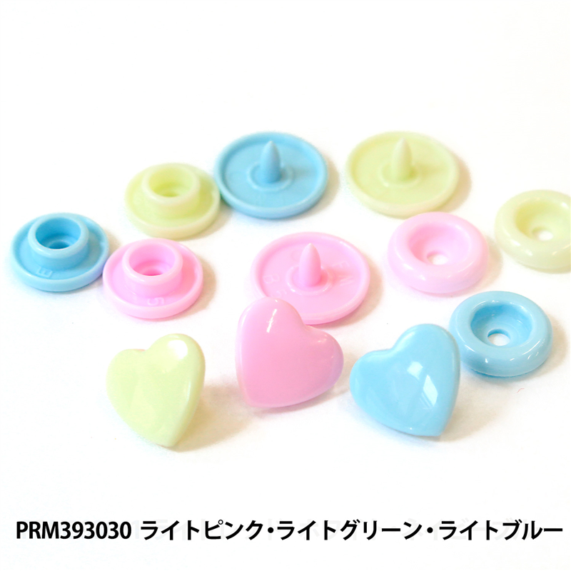 日本紐釦貿易 Prym プリム カラースナップボタン ハート 12.4mm ライトピンク・ライトグリーン・ライトブルー 30組入 PRM393030 (ご注文単位1束)【直送品】