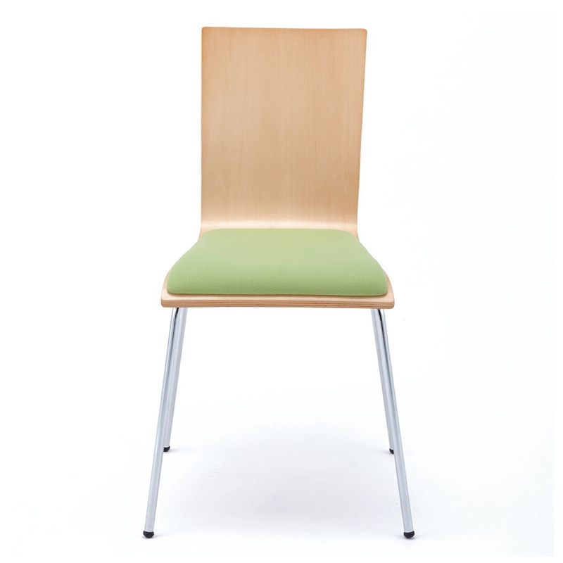 - Plywood Series ナチュラルウッドに明るいグリーンのシートが爽やかなスタッキングチェア。●完成品●重量:4.1kg●張地:布(ポリエステル)/脚部:スチール(クロームメッキ仕上げ)/床設置面クッション材:PVC●4脚までスタッキング可能