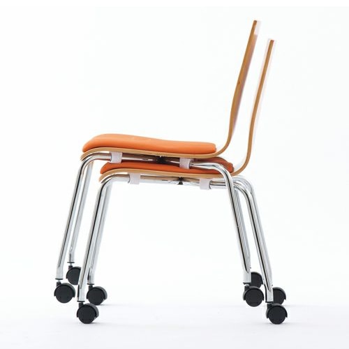 - Plywood Series ナチュラルなイメージのパッド座付きキャスターチェア。4脚までスタッキングでき収納にも省スペース!●完成品●重量:5.6kg●張地:布(ポリエステル)/脚部:スチール(クロームメッキ仕上げ)/キャスター:ナイロン●4脚までスタッキング可能