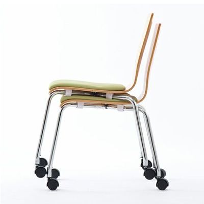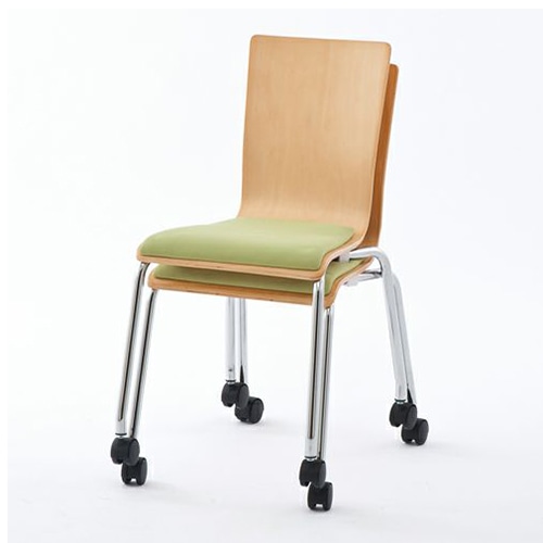 - Plywood Series ナチュラルなイメージのパッド座付きキャスターチェア。4脚までスタッキングでき収納にも省スペース!●完成品●重量:5.6kg●張地:布(ポリエステル)/脚部:スチール(クロームメッキ仕上げ)/キャスター:ナイロン●4脚までスタッキング可能