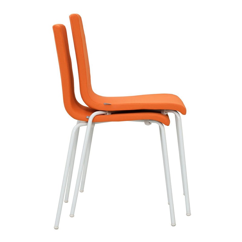 - Plywood Series 背と座面にウレタンクッションが入って座り心地のよいファブリックチェア。明るいオレンジにホワイトの脚が爽やかな印象です。座高460mm●完成品●重量:3.5kg●脚部:スチール(粉体塗装)/床設置面クッション材:PVC●4脚までスタッキング可能