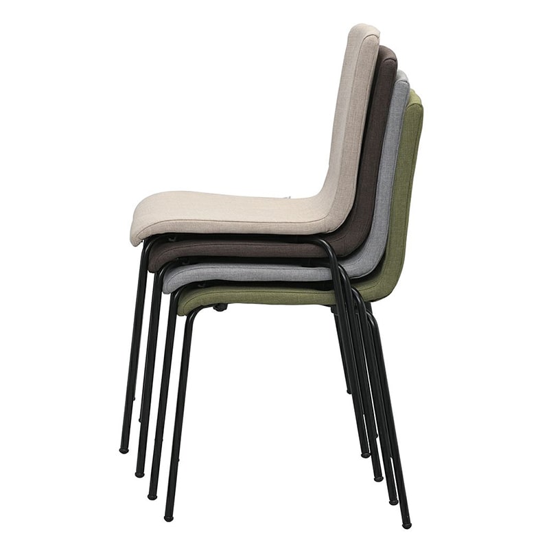 - 背と座面にウレタンクッションが入って座り心地のよいファブリックチェア。平織張地の風合いがカフェのような雰囲気を演出。座高460mm●完成品●重量:3.5kg●脚部:スチール(粉体塗装)/床設置面クッション材:PVC●4脚までスタッキング可能