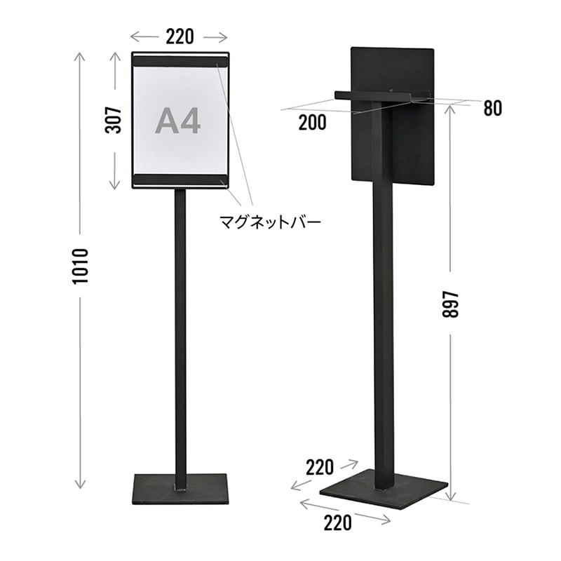 - 消毒液用スタンドと案内板を兼ね備えた商品。消毒液置き有効寸法:W200×D80案内板:A4縦推奨●お客様組立て商品です(2人以上で約15分)●重量:6kg●マグネットバー:スチール(粉体塗装)・マグネット