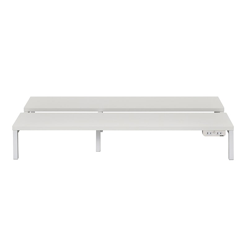 - 対面2人分の机上台が1つになった対面机上台のコンセント付きタイプ。デスク上のスペースを有効活用でき、向かい合わせのデスクへの設置はもちろん、フリーアドレスデスクに設置しても机上の配線フタがスムーズに開閉できます。コンセントと中間脚は左右どちら側にも取り付け可能です。2ヶ口コンセントが2個付属しています。コードの長さ:約1950mm(製品後端~プラグ端)●お客様組立て商品です(2人以上で約10分)●重量:6.3kg●脚部:スチール(粉体塗装)/設置面クッション材:フェルト/コンセント:合成樹脂●定格電圧:100V/屋内用