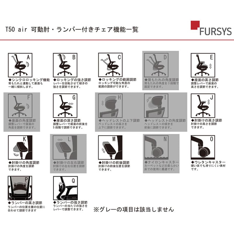 アール・エフ・ヤマカワ チェア T50air 可動肘 ランバー付 グレー CHXRF6100AZ2D1B 1台(ご注文単位1台)【直送品】