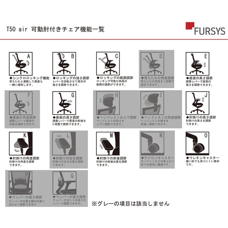 アール・エフ・ヤマカワ チェア T50air 可動肘 グレー CHXRF6100RAZ2D1B 1台(ご注文単位1台)【直送品】