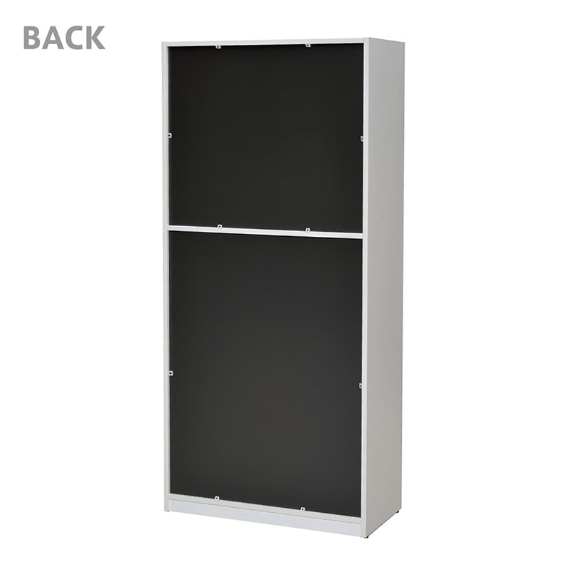 - グレーの背板がスタイリッシュなプリーマシリーズのハイシェルフグレー全面扉付き。上から2段目の棚板のみ固定、そのほか可動棚が3枚付属、32mmピッチでお好みの位置に設置可能です。背面化粧仕上げで裏側もすっきり。扉取手はシンプルなアルミ製、鍵が2個付属しています。別売のオプション棚板を追加してご利用いただけます。耐荷重棚板1枚あたり:約20kg(均等荷重)、総耐荷重:約100kg●お客様組立て商品です(2人以上で約40分)●重量:63kg●扉:低圧メラミン樹脂化粧木質ボード・PVCエッジ・スチール(粉体塗装)/取手:アルミ