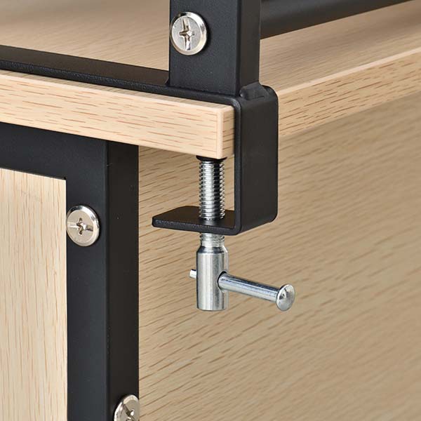 - 机上空間に収納スペースを増設できるワークデスク2シリーズの上置ハイシェルフ。天板厚み15~36mm、設置箇所奥行き40mm以上のデスクに取り付け可能。2段の棚は可動ピッチ51mmでお好みの高さに設置してご利用いただけます。※必ず壁付けでご使用ください。●組立時間:2人以上で約15分(要プラスドライバー)●クランプ材質:スチール(粉体塗装)・合成樹脂