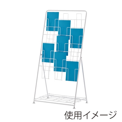 - A4パンフレットを7段3列に収納できるパンフレットスタンド。下のラック部分にはストックが置けます。使わないときは折り畳んでコンパクトに収納可。折りたたみ時のサイズはW740xD80xH1470 /mm。●完成品●重量:6.2kg