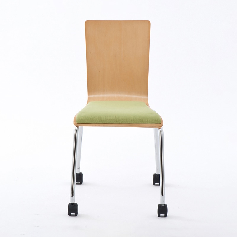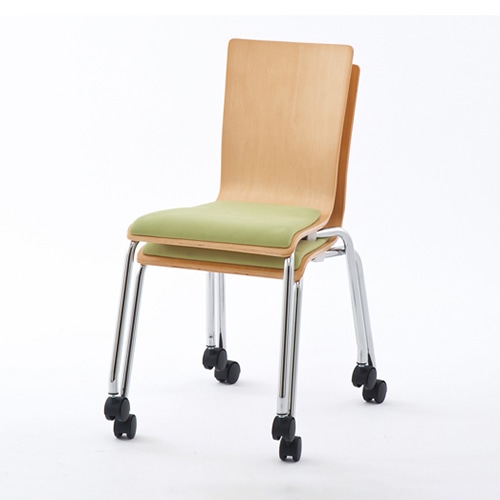- Plywood Series ナチュラルなイメージのパッド座付きキャスターチェア。4脚までスタッキングでき収納にも省スペース!●完成品●重量:5.6kg●張地:布(ポリエステル)/脚部:スチール(クロームメッキ仕上げ)/キャスター:ナイロン●4脚までスタッキング可能