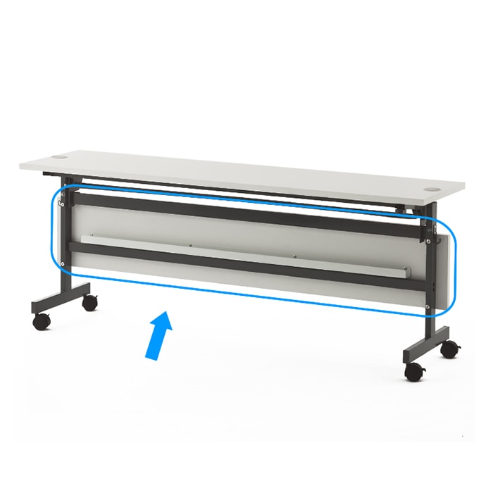 Terminal Folding Series 天板の両側に配線穴、オプション幕板内側には配線受け付き折りたたみテーブル。天板折りたたみ式でスタッキングが可能です。●お客様組立て商品です(2人以上で約20分)●重量:29.1kg●フレーム・棚・脚部・フック:スチール(粉体塗装)/配線穴キャップ:合成樹脂/キャスター:ナイロン