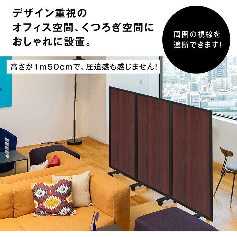 コマイ 3連スクリーン 木目調タイプ ブラックフレーム ダーク 幅2700×高さ1500mm TP3-1509BNB-MMWW 1台(ご注文単位1台)【直送品】