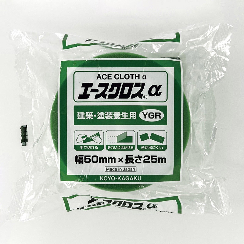 光洋化学 養生テープ エースクロスα YGR 幅50mm×長さ25m 緑 1巻(ご注文単位30巻)【直送品】